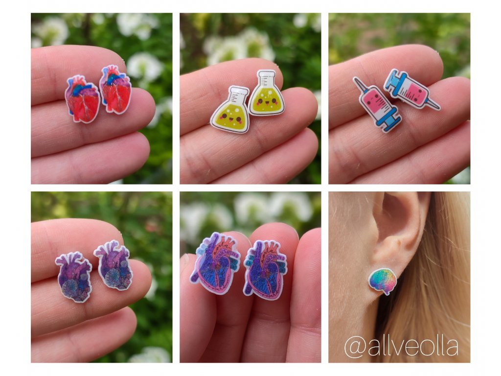 Náušnice z nerez. oceli + pryskyřice.